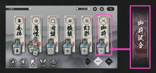同盟や各修練での戦いで得られた様々な「修練薬」を消費し、それぞれの修練所で選択したステータスが仲間全体で強化される。