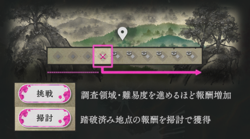 「掃討」機能を使用することで、踏破済みの最新領域かつ、一番高い難易度の報酬を再度獲得できます。