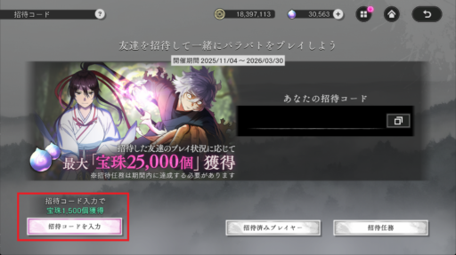 招待コード