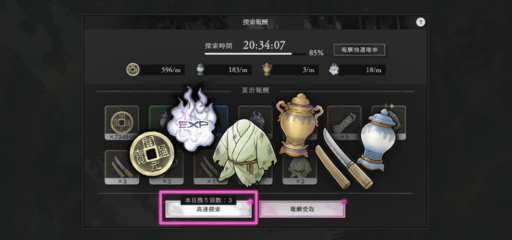 神仙郷の進行度に応じて探索の収集量が増加する。