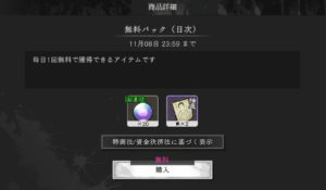「よろず屋」では毎日「無料パック」が貰えるので忘れずに受け取りましょう。また、「週次」や「月次」「イベントパック」など一定期間ごとに貰えるパックもあるのでこちらも忘れずに受け取るようにしましょう。